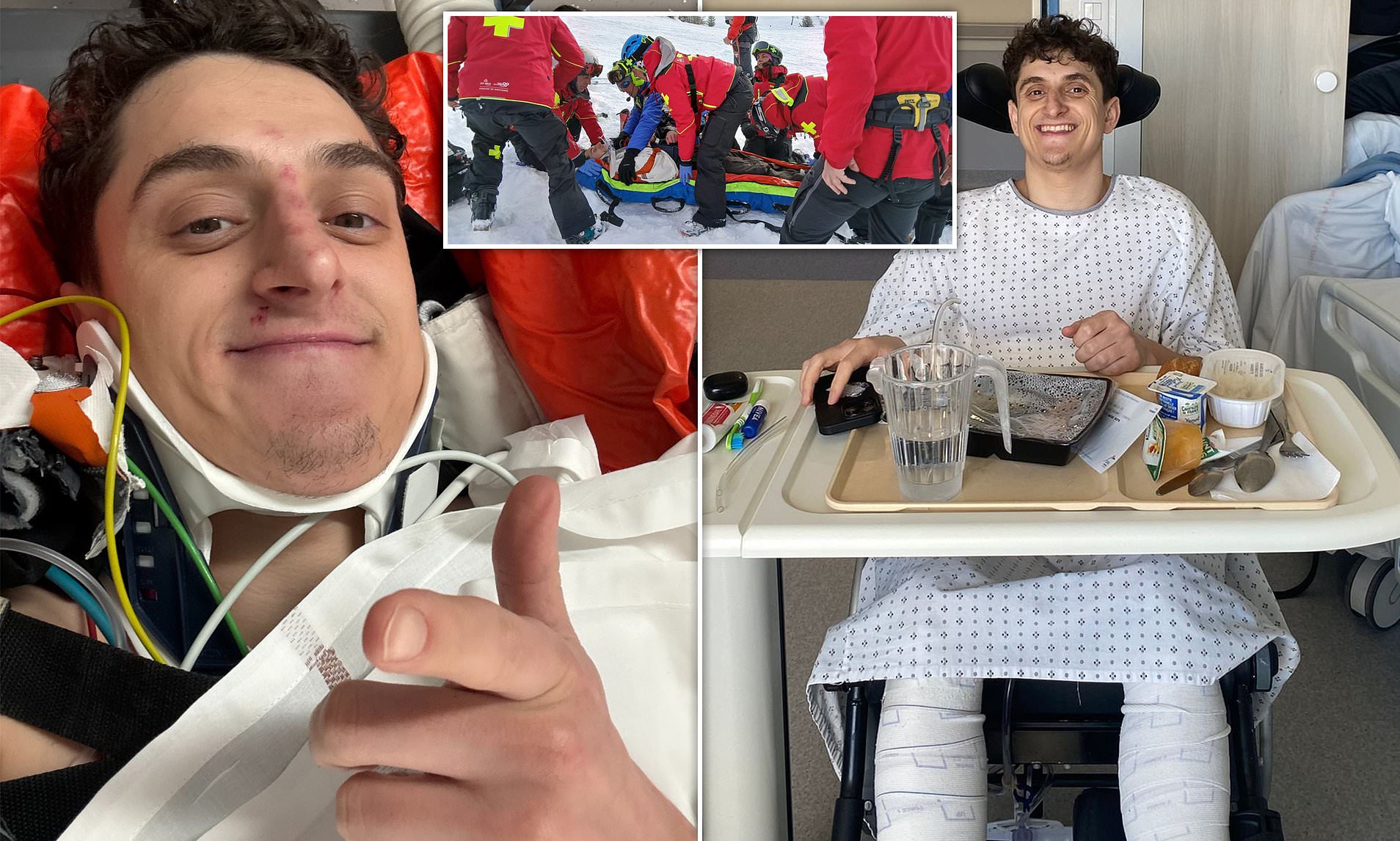 The keen skier was taken to Grenoble Hospital in France, where he underwent emergency spine surgery.